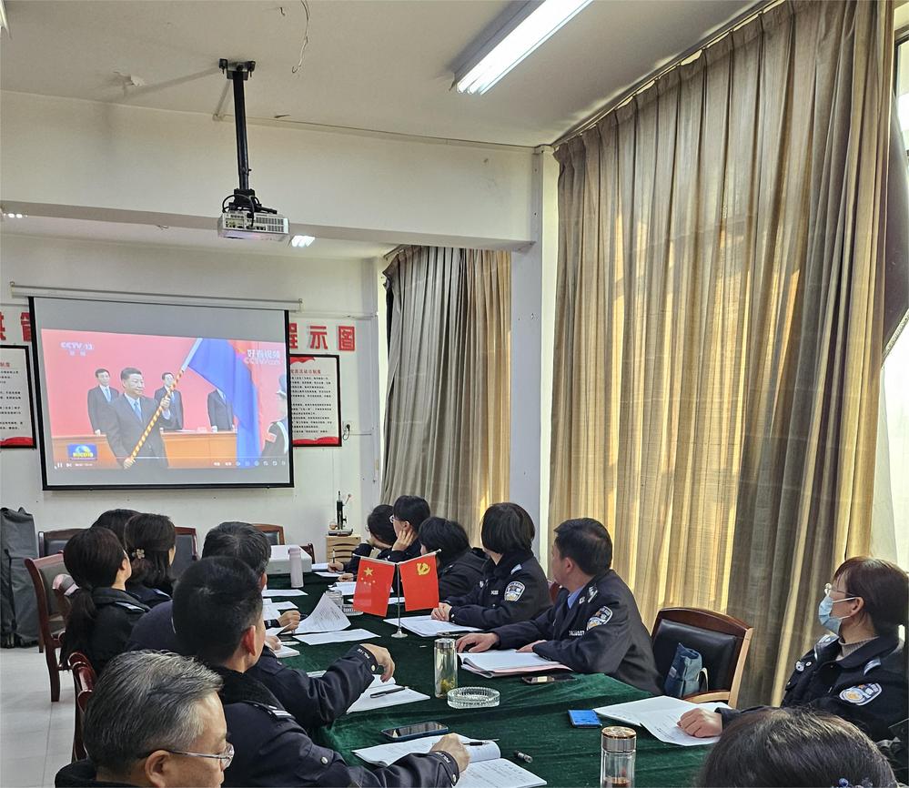 活动伊始,在朱少韧的带领下,全体民警重温习近平总书记向中国人民警察队伍授旗并致训词精神,面对警旗庄严宣誓、重温人民警察入警誓词。
