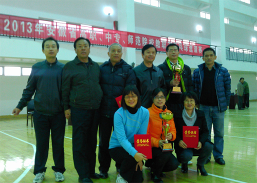 11月24日下午,2013年安徽省高职、中专、师范院校教职工乒乓球邀请赛在合肥职业技术学院落下帷幕。本次比赛由省教育厅体育卫生艺术教育处和省学校体育卫生协会主办,合肥地区高职高专体协和合肥职业技术学院共同承办,共有来自省内14所学校的20支男女代表队参加,参赛队员百余人。经过顽强拼搏,我院女乒选手在本次比赛中获得女子团体冠军,何咏梅、王桂蓉老师分别获得女子单打第一名和第四名,男乒选手获得男子团体第六名,副院长邓生苗获得校长组男子单打第六名。本次比赛,院工会高度重视,精心组织。通过参赛,我院加强了与同行的体育文化交流,增进了与兄弟院校的友谊。(院工会)