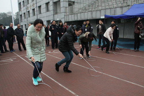 为丰富教职工的校园文化生活,营造健康文明、积极向上的校园氛围,推动全民健身运动的深入开展,11月25日下午,院工会在警体训练中心田径场举办了我院第六届教职工趣味运动会。来自学院11个分工会共283名教职工参加了角逐。本次比赛共设一个团体项目(集体跳绳)和男、女个人项目(回忆童年:滚铁圈跑和保龄球)。活动现场精彩纷呈,参赛选手顽强拼搏,争时间抢速度,观众阵阵助威呐喊,气氛紧张而欢乐,为校园的初冬增添了一幅美丽的画卷。