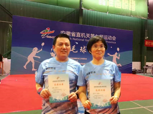 在开局发接发落后2分的情况下,我方队员迅速调整心态,打到11:7领先,局间休息时,有多年大赛经验的教练员黄拥军现场指导:“不要轻敌,能打进决赛的都是有绝对的实力的选手,他们会反扑的,我们要改变战术……”果然如教练所言,在比分你追我赶的跌宕起伏中,我方队员咬紧牙关,密切配合,一分一分地争取,终于以21:16顺利拿下第一局。随后,刘忠平、钱英配合默契、气势如虹,以21:6大比分拿下第二局,获得企事业组乙组羽毛球项目混双冠军,取得了安徽省司法厅企事业组羽毛球队历年来最好成绩。