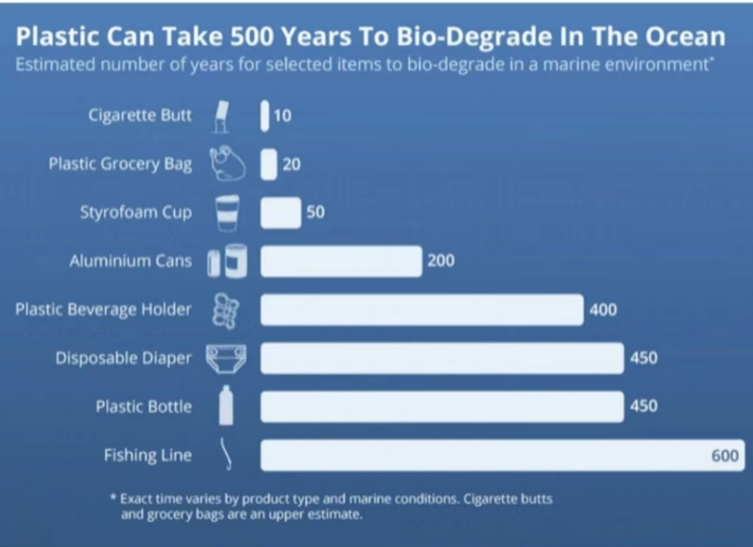 Task You are required to talk about the chart about Plastic Can Take 500 Years To Bio-Degrade In The Ocean, describing and comparing what you have seen.