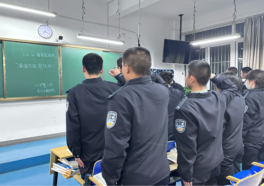为了弘扬宪法至上,法律面前人人平等的法治理念,营造遵法学法的浓厚氛围,提高学生守法意识,警察系通过专题升国旗仪式活动、学习宪法宣传暨签名倡议活动等,在师生中开展了“弘扬宪法精神,推进依法治校”国家宪法日宣传。23级司警一班于12月4日开展开展学习宪法主题班会宣传活动。该会议由团支书陆瑜主持,23级司警一班全体成员参与。