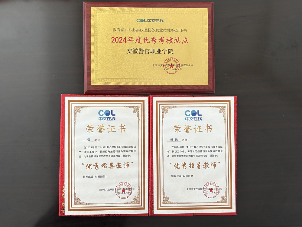 此次获奖不仅是对警察系1+X社会心理服务职业技能等级证书培训工作的肯定,也是对我院师资队伍专业水平的认可。警察系将继续深化1+X证书制度与专业建设衔接,优化人才培养模式,为社会培养更多优秀的心理服务专业人才,助力社会心理服务体系建设与发展。(一审:韩伟;二审:叶巧雅 三审:姚峰)