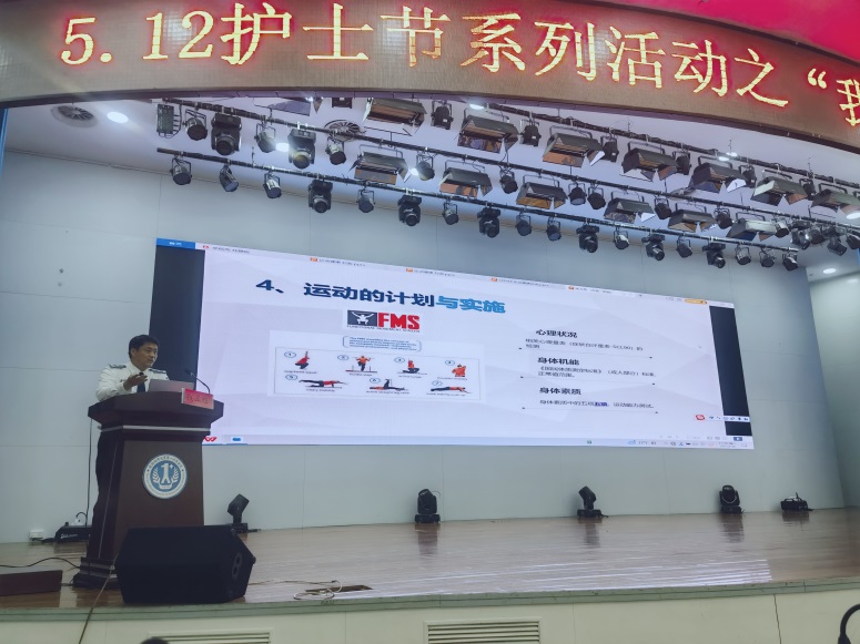 钱玉想教授针对护士群体,从运动与健康关联、运动的类型、运动的强度判定、运动计划与实施、科学运动的原则和运动时的注意事项六个方面进行了普适性、补偿式的知识传授。