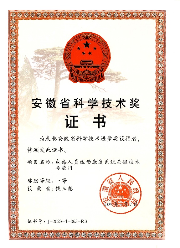 2023年安徽省科学技术奖获奖名单中,我部钱玉想教授参与(排名第3)“戒毒人员运动康复系统关键技术与应用”项目获安徽省科学技术进步奖一等奖。