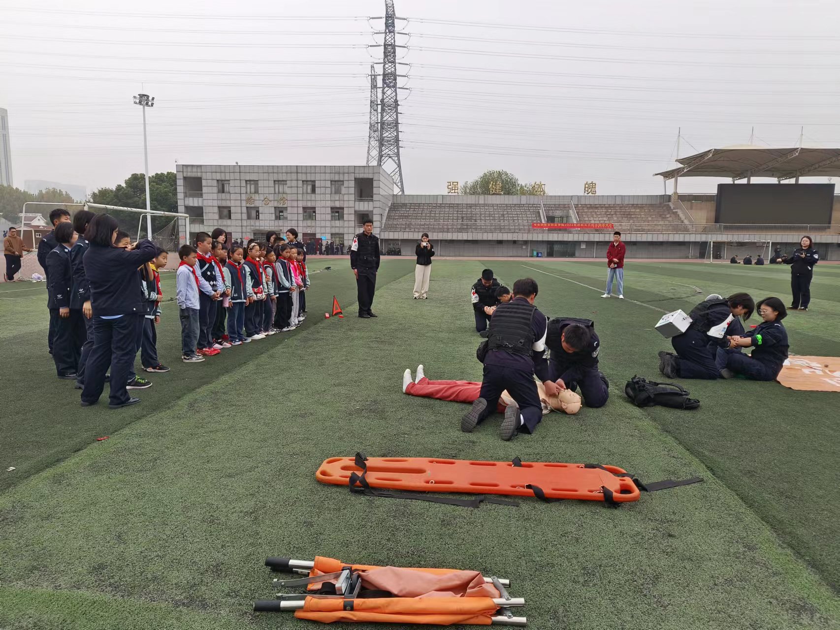 在蓝焰急救队展示的现场急救演习中,小学生们了解到对不同伤情的应急处理方式,提高了安全意识和急救知识,增强了紧急情况下的应变能力。