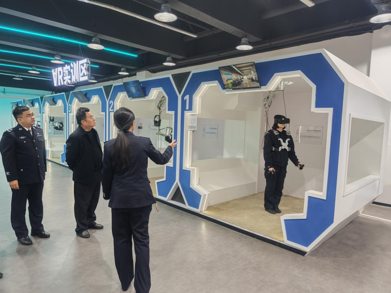 在四川司法警官职业学院,马克思主义学院院长李士虎、副院长秦全斌等同志热情接待了调研组一行。李士虎详细地介绍了四川警院在大思政课实践教学基地和思政课教师队伍建设上的先进经验和做法。会后,调研组参观了虚拟仿真实训基地。