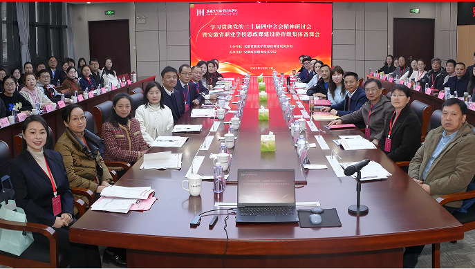 为深入学习贯彻党的二十届四中全会精神和习近平总书记关于思政课建设的重要指示精神,推动党的创新理论“三进”工作,12月13日,“学习贯彻党的二十届四中全会精神研讨会暨安徽省职业学校思政课建设协作组集体备课会”在安徽商贸职业技术学院举行。全省职业学校思政课建设协作组成员单位代表齐聚一堂,共研思政理论、共谋教学创新。马克思主义学院副院长王芸参加了本次会议。