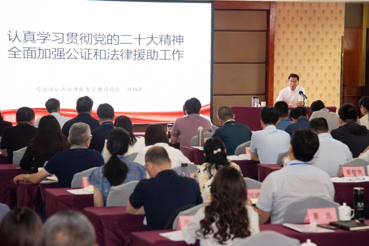 刘福臣局长为培训班做《认真学习贯彻党的二十大精神 全面加强公证和法律援助工作》专题辅导,另外还邀请中共安徽省委党校(安徽行政学院)、外交部和司法部等专家领导做《深入践行习近平新时代中国特色社会主义思想,坚持依法行政,建设法治政府》《加入取消认证公约对公证工作的影响及应对》《法律援助质量评估工作》等专题讲座。并邀请教育部政策法规司、安徽省教育厅有关同志对《关于加强高校法律援助志愿服务工作的意见》进行讨论。