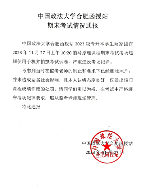 本次集中授课学生课堂秩序及课程互动良好,请假流程规范;期末考试期间,监考人员恪尽职守、尽职尽责,考场秩序井然。对于个别违反考场纪律的同学函授站依照相关考试规定流程及时作出处理。(培训部 成教科)