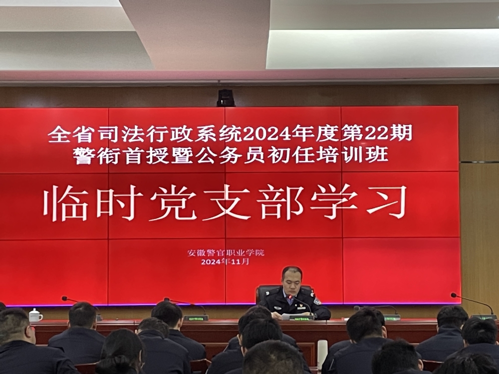 为进一步加强培训班管理,充分发挥党组织战斗堡垒作用和党员模范先锋作用,11月19日晚,第22期警衔首授暨公务员初任培训班成立临时党支部,并组织全体党员开展了一次主题鲜明的学习活动。
