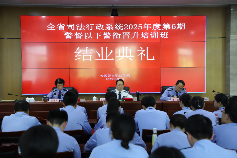 4月25日上午,全省司法行政系统2025年度第6期警督以下警衔晋升培训班在继续教育学院多功能厅举行结业典礼。继续教育学院院长许起鹏、警训科人员参加了典礼。