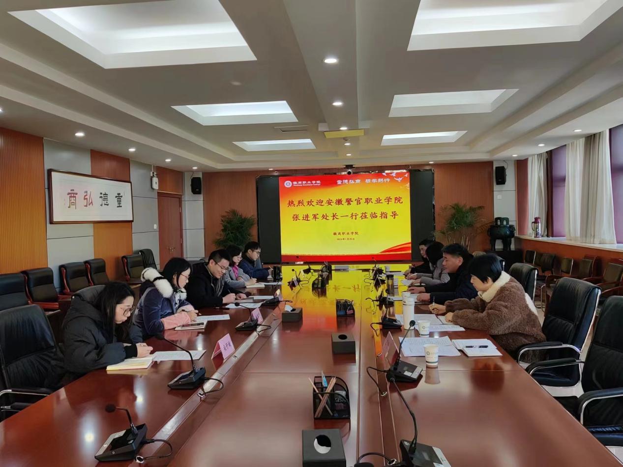 1月25日下午,学院人事警务处赴徽商职业学院开展学习调研,徽商职业学院组织人事处主要负责人陆培中热情接待了张进军一行,该校组织人事处相关人员参加座谈。