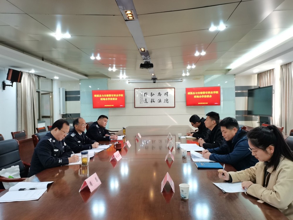 黄甸介绍了绩溪县情、人才工作站和“三实”(实践、实习、实训)基地建设情况,并表示,实行校地合作有助于推进学校教育与社会教育有效融合,提高人才培养质量,拓展学生就业渠道,提升学术研究水平,促进科技成果转化,也有利于皖南经济社会高质量发展。绩溪县为大学生提供暑期社会实践岗位、实习实训岗位和重点企业人才需求岗位,真诚希望能与警院开展多方位合作。