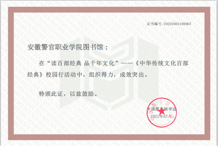 我院图书馆高度重视,精心组织,通过线上线下广泛宣传动员,全院师生共3455人次参加,有21名同学在传统文化知识竞赛中进入“知识达人”名单,有10名同学在阅读打卡活动中进入“阅读达人”名单。经过学院图书馆推荐和主办方多轮评议,有3名师生在微书评和原著诵读活动中进入“精选作品”展示名单。我院参赛人次在参赛机构排行中位居第20位,图书馆荣获“组织得力”奖。