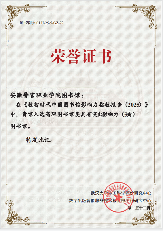 近日,《数智时代中国图书馆影响力指数报告(2025版)》正式发布。学院图书馆从1554 所高职(专科)院校图书馆中脱颖而出,被评为五星图书馆,影响力指数位列全国高职(高专)图书馆总排行榜第79名,安徽省第3名。继2024年获评后,学院图书馆再度上榜,连续两年荣获此项权威荣誉。