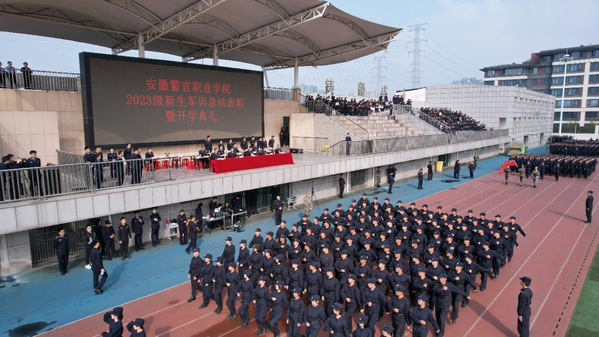 操申斌作开学典礼动员讲话,他希望同学们在安警院这片热土上,淬炼藏蓝色的青春,争做修身立德、志存高远,做仰望星空的警校生。树立远大志向,坚定理想信念,明确目标方向,让青春在为祖国、为民族、为人民、为人类的不懈奋斗中绽放绚丽之花。争做勤学上进、追求卓越,做脚踏实地的警校生。充分珍惜在这里的宝贵时光,以时不我待、只争朝夕的紧迫感,奋发学习、积极实践,努力成长为有理想、敢担当、能吃苦、肯奋斗的新时代好青年。争做强健体魄、健康身心,做昂扬向上的警校生。筑牢政治忠诚、刻苦学习训练、锤炼过硬作风,树立正确的人生观和价值观,积极适应警务化管理要求,严格遵守学院规章制度,展现新时代警院学子风采。争做锤炼意志、砥砺坚韧,做不负韶华的警校生。克服浮躁之气,静心努力读书,努力做到又博又专、愈博愈专,以最饱满的热情、最昂扬的斗志投入到学习生活中去。