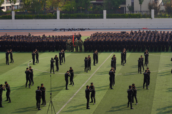 院党委书记张国昌,院党委副书记、院长操申斌,院党委副书记蒋红旗,院党委委员、副院长周善来,院党委委员、副院长沈友耀出席大会。院属各单位、各部门党政主要负责同志、五系、马院、警体部学管人员、全体新生班级辅导员(班主任)、教师代表、2023级全体新生参加大会。