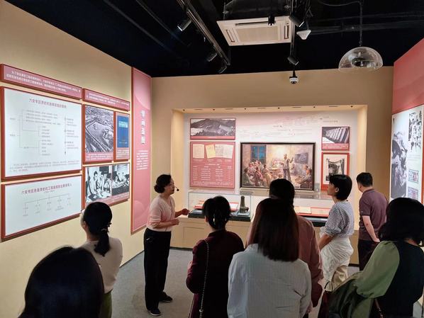 活动现场,党总支书记带领大家依次参观了“千年夙愿”“百年伟业”“精神丰碑”“时代华章”四大展览板块,她巧妙结合场景复原、多媒体影像等多元化展陈,生动讲述了淠史杭灌区的历史渊源、宏伟工程、建设历程,以及在农业灌溉、防洪减灾等领域发挥的重大作用;深情讲述了工程技术人员在物资极度匮乏的年代,凭借科学智慧突破重重技术难关,数万民工舍小家为大家,用双手与汗水铸的水利奇迹。一个个真实的故事、一组组震撼的数据,让全体党员更加深刻的领悟到“自力更生、顽强拼搏、牺牲奉献、科学求实”的淠史杭精神内涵和时代价值。