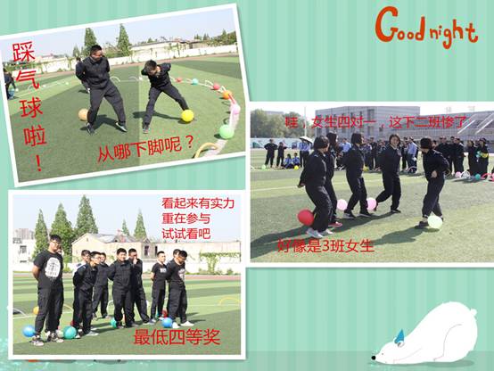 比赛共四支队伍参赛,各班组成拉拉队为本班同学加油,队员们气势高昂,拼搏精神可佳,加油声震天动地。经过激烈的角逐,最终15计算机五班和15计算机六班脱颖而出进入决赛。同时15计算机二班和15计算机三班通过踩气球的形式决定名次。想为班级争得荣誉。通过意志与耐力的比拼,15计算机三班踩气球第三名。最终15计算机五班获得拔河比赛的胜利。
