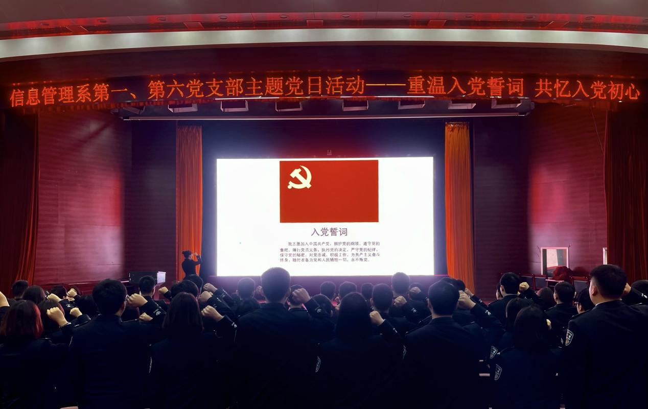 2024年12月18日上午,信息管理系第一、第六党支部在学术报告厅举行“重温入党誓词 共忆入党初心”主题党日活动,全体师生党员参加活动。