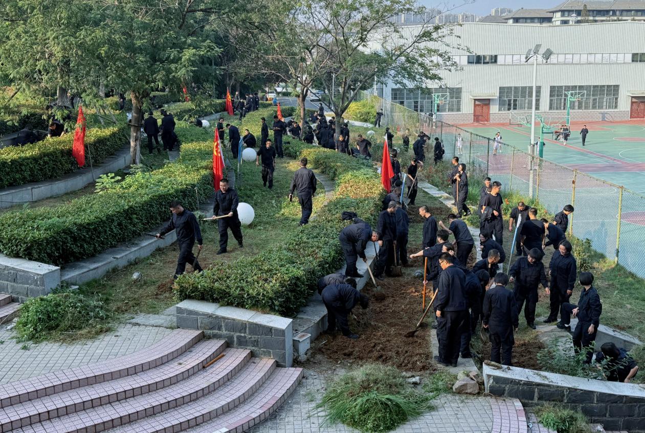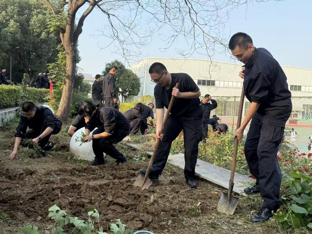 10月28日下午3点,伴随着铁锹、水壶等工具的有序分发,活动正式拉开序幕。同学们手持工具分组行动,或挥锹挖坑、或扶苗填土、或浇水固根,现场一派热火朝天的劳动景象。劳动间隙,指导老师结合现场绿植品类,围绕浇水频次、土壤肥力维护等实用知识展开细致讲解,让同学们既掌握了绿植培育的 “硬技能”,又体会了劳动的乐趣。