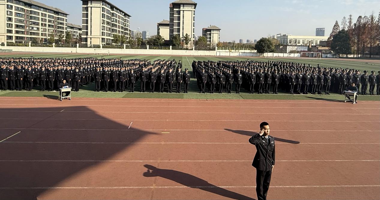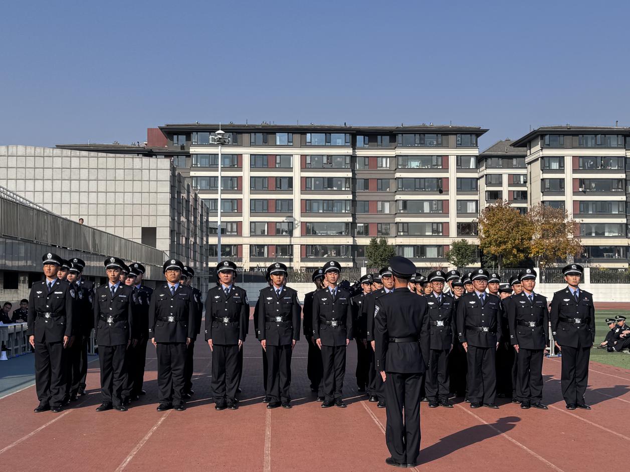 会操现场,各班级方阵身着冬常服,迈着坚定步伐依次入场,精神抖擞、气宇轩昂。从整队报告到有序退场,同学们动作规范娴熟、姿态挺拔端正;在稍息立正跨立、停止间转法、蹲下与起立、行进与立定、步伐变换、敬礼与礼毕等多个规定科目展示中,他们对每一道指令都精准回应,每一个动作都刚劲有力,摆臂高度整齐划一,落脚声音铿锵统一,充分展现出25级新生扎实的训练功底、严谨的作风养成与良好的警务素养,赢得现场评委与观赛师生的阵阵掌声。