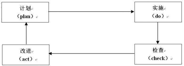 随着经济社会的发展进步,社会“流变”水平快速提高,在这样的背景下戴明学说崭露头角。戴明学说的内涵非常丰富,核心思想集中体现于著名的“戴明14点”,其中影响最为广泛的莫过于戴明循环,也即PDCA循环。戴明循环由计划(plan)、实施(do)、检查(check)、改进(act)等4个相互衔接的基本环节组成(如图1),其主要内涵包括四点。一是“计划”包含长远目标、原则、方针的确立。戴明一再强调,最高领导层要从纷繁复杂的日常事务中解脱出来,确定正确的发展战略,把改进产品质量和服务作为恒久的目标,永远以质量取胜。二是“检查”要用数据说话。戴明创立了在质量管理中引入统计学的理论,是把统计分析技术应用于非生产活动的先驱者。三是“PDCA”不是一个封闭的圆环,而是有始无终、首尾相继、螺旋上升的质量提升过程。四是该循环适用于各个层面,从组织到个人都可以建立PDCA循环,最终形成“大环套小环”的总体格局。