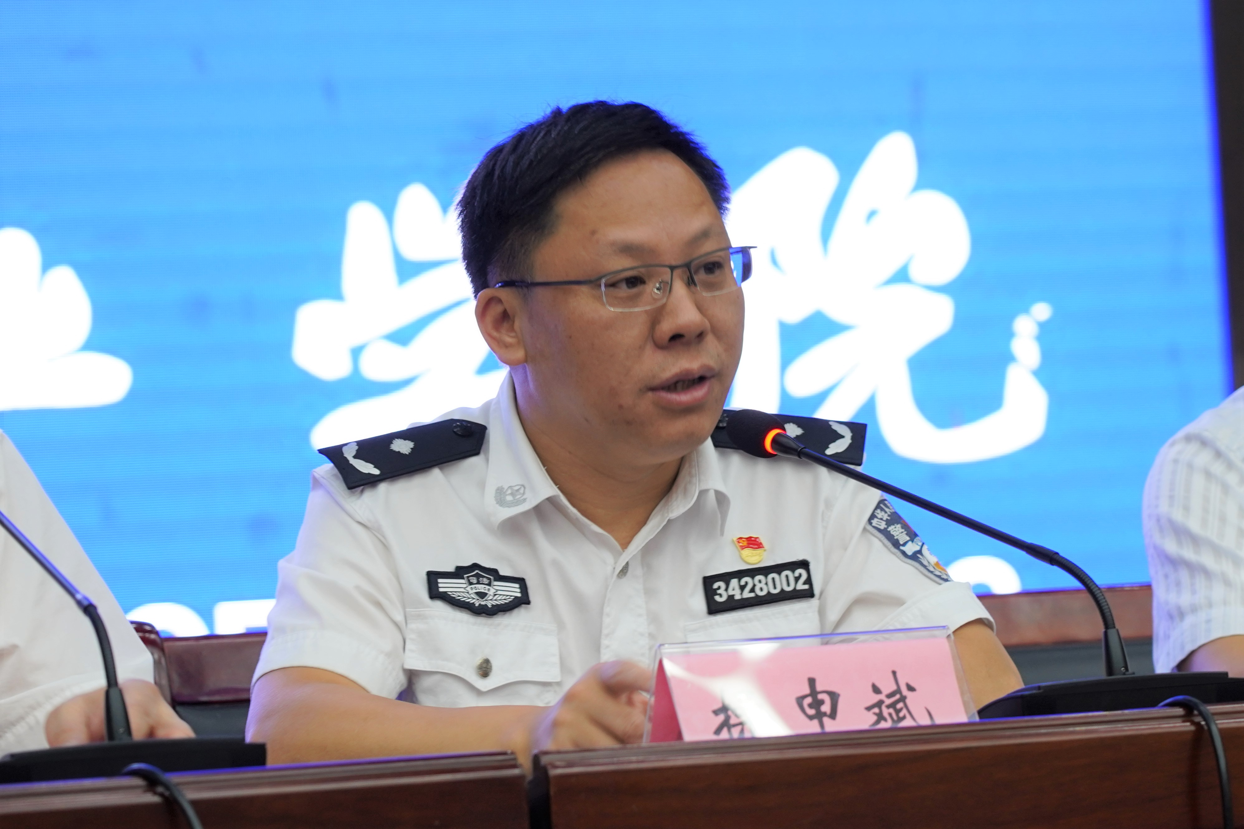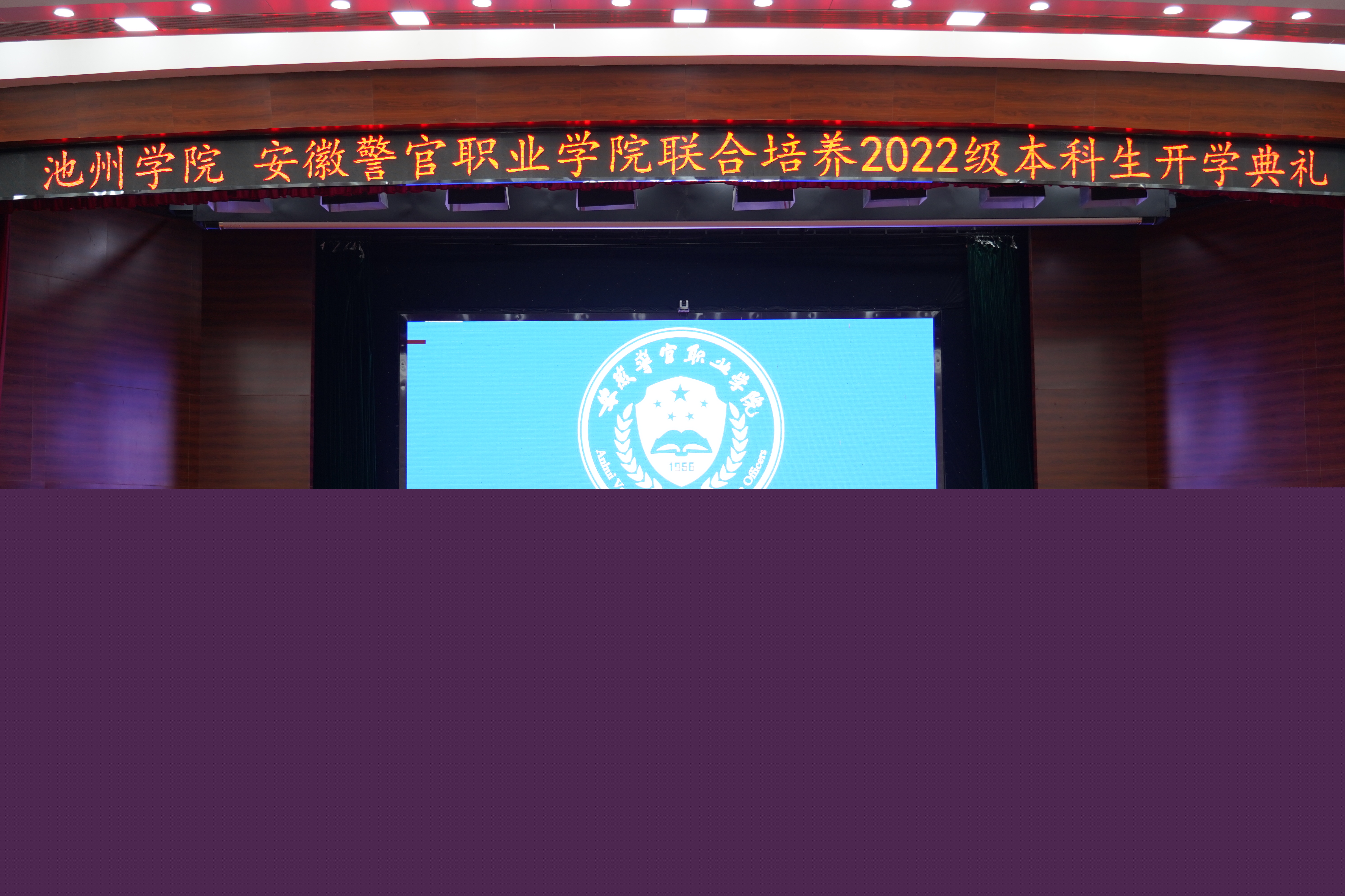 池州学院党委书记孙晓峰代表池州学院全体师生向新到来的全体同学表示最热烈的祝贺和最诚挚的祝福,他介绍了池州学院的历史、师资力量、教学设施以及办学特色,希望同学们和学院一同共迎新开始、共谱新篇章,并就今后的学习生活提出三点希望和要求:一是勤学善思、学有所成。鼓励同学们更加努力学习,苦练本领、增长才干,增强学习的主动性,时刻做到“我要学”,在学习中找到思考和成长的乐趣。二是见贤思齐、共同成长。广泛学习警官学院与池州学院双平台中的榜样精神,拓展 “朋友圈”,多倾听、多交流,与同学们一道携手并进、共同进步。三是胸怀国家、敢于担当。勉励同学们始终将国家命运与个人前途联系起来,将民族振兴与自身发展联系起来,牢记习近平总书记的嘱托,在民族复兴的新征程中贡献青春力量。
