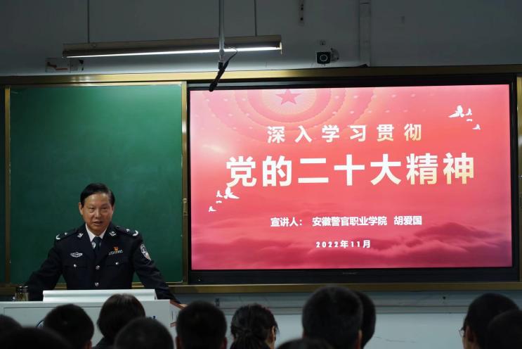 为深入学习宣传贯彻党的二十大精神,落实高校立德树人根本任务,11月23日晚,学院党委副书记、副院长胡爱国走进警察系,为警察系部分师生代表进行党的二十大精神专题宣讲。