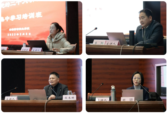 参训学员纷纷表示,此次培训班主题鲜明、内容丰富、信息密集,每一节课都是优中选优、干货满满、催人奋进,通过此次培训班的学习,我们对党的二十大精神有了更深刻的认识,会在今后工作中以党的二十大精神为指引,全力推动学院教育教学改革和办学事业高质量发展。其中五位教职工还结合自身学习党的二十大精神的学习心得和体会,依次作交流发言。