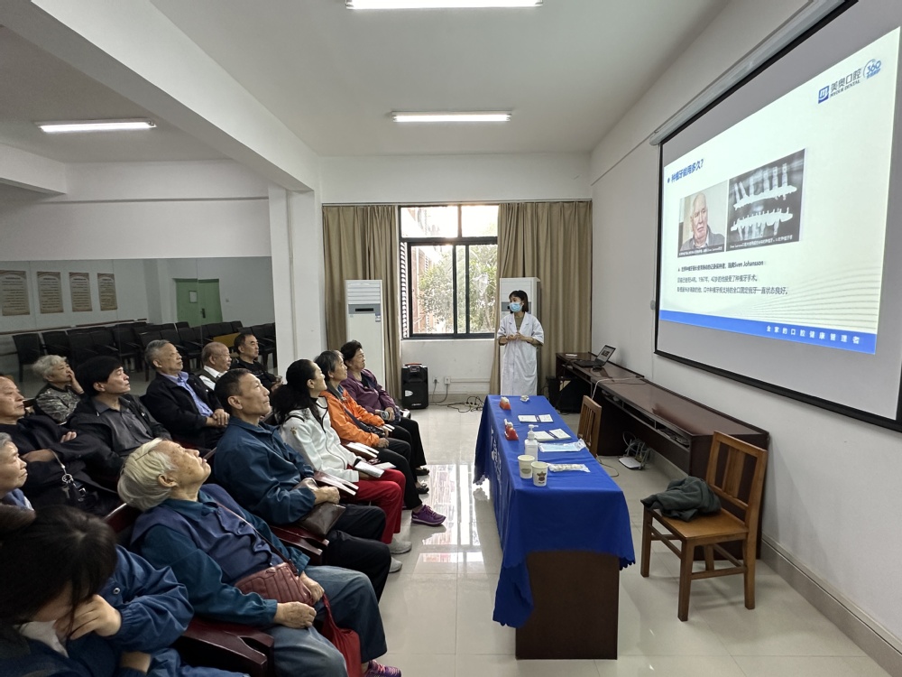 10月10日上午,学院在院东区老干部活动室举办口腔健康知识讲座及义诊活动,40多位离退休老同志到场聆听讲座。